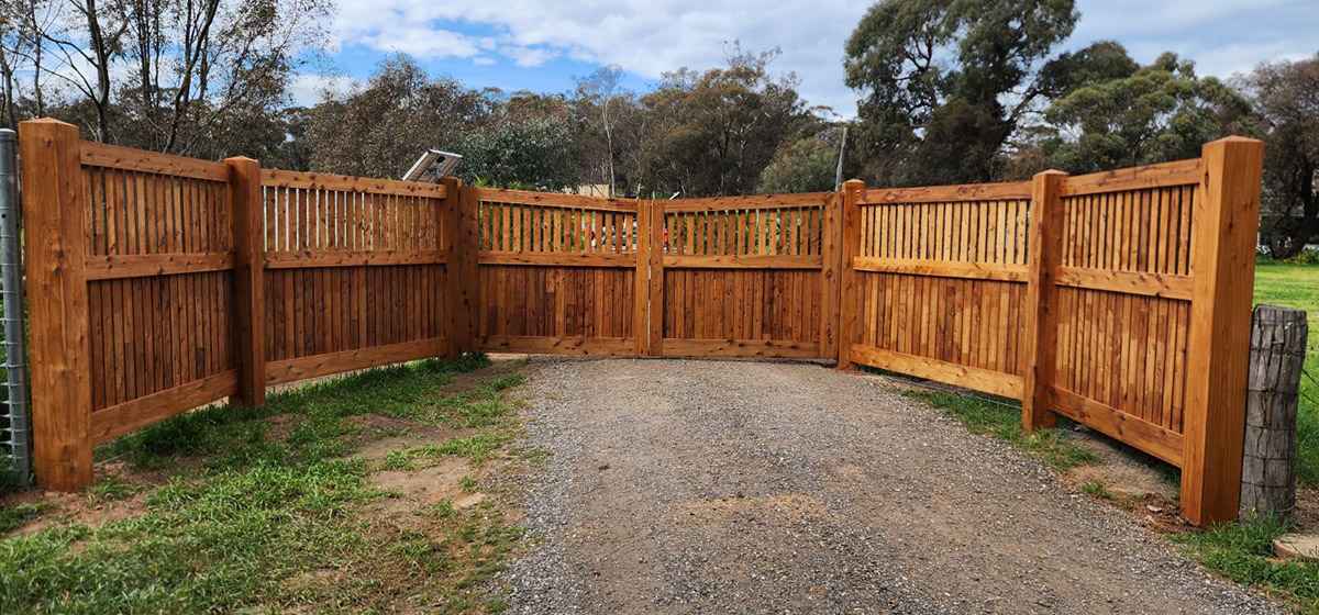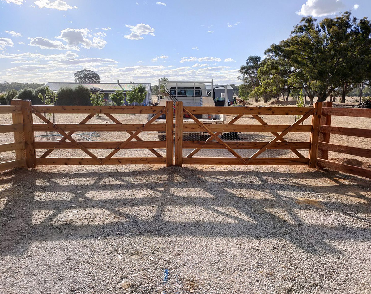We use a range of materials from standard farm gates to custom timber cypress or hardwood gates or use PVC Fencing for a great low maintenance look.
